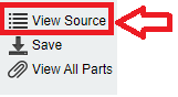 5) Then click on View Source located at the top right of the popup window displaying the email content.